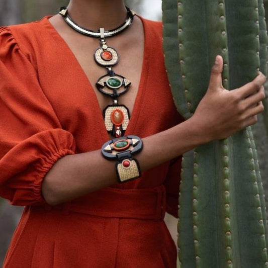 Gissa Bicalho, a globally renowned designer, from Belo Horizonte- MG, Southeast of Brazil. Her colourful pieces are more than an accessory, you wear a piece of art that combines architecture and nature.