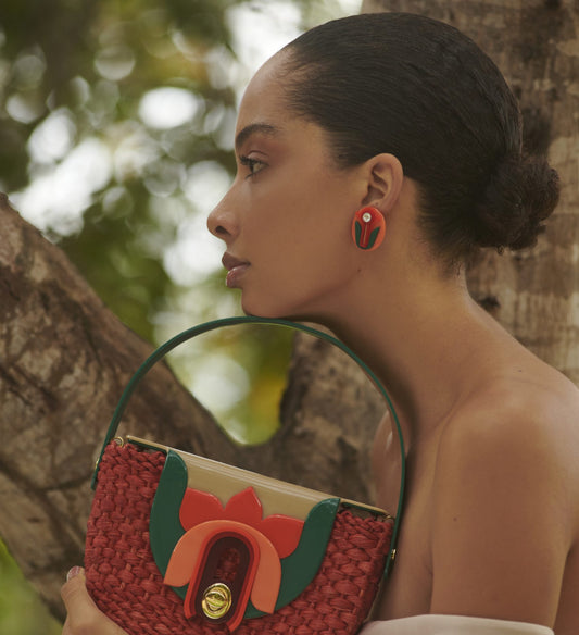 Gissa Bicalho, a globally renowned designer, from Belo Horizonte- MG, Southeast of Brazil. Her colourful pieces are more than an accessory, you wear a piece of art that combines architecture and nature.