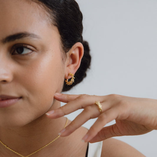 Our collection is a mix of basic, colourful and statement earrings. It includes dangles, hoops and studs. High-fashion sustainable products to give an extra charm to you be your best version.